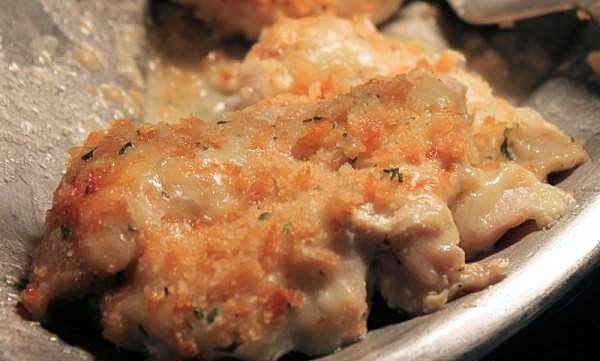 Mix bread crumbs, butter and parsley and place on top of melted cheese