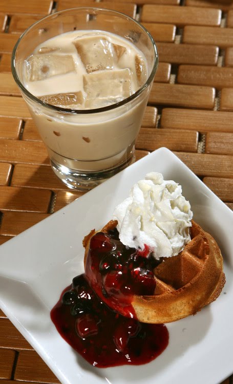 Belgian Waffles with Berry Compote and Whipped Cream Belgium